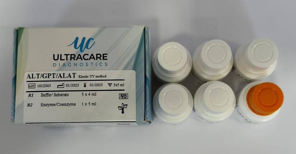 Ultracare GPT (ALT/ALAT) is a high-quality diagnostic reagent designed for accurate measurement of liver enzyme activity in clinical laboratories. It provides reliable results for monitoring liver function and supporting the diagnosis of liver disorders.