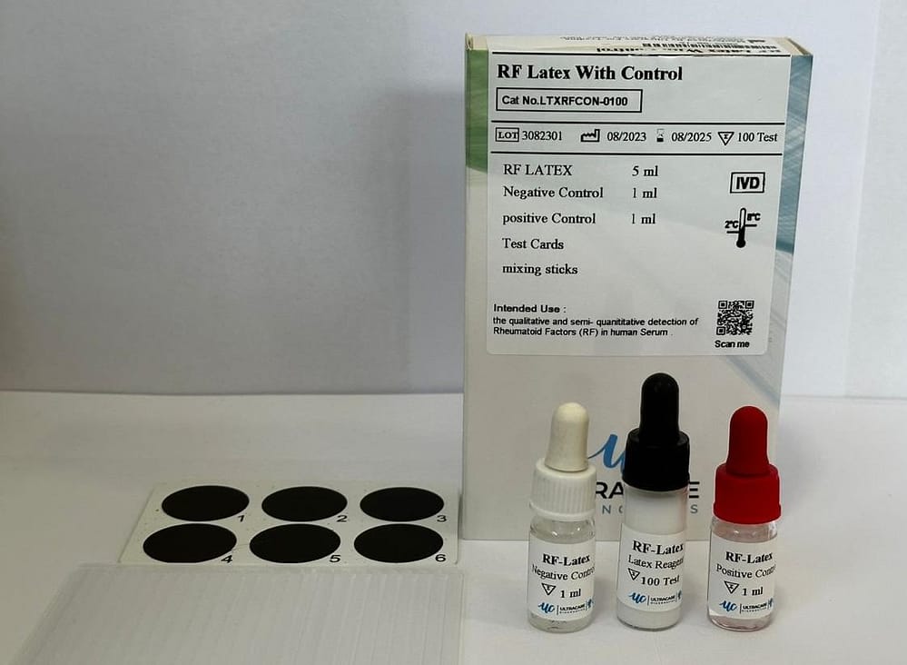 Ultracare RF Latex is a latex agglutination slide test for the rapid detection and semi-quantitation of Rheumatoid Factor (RF) in human serum. It is used as an aid in the diagnosis of Rheumatoid Arthritis and related autoimmune conditions.